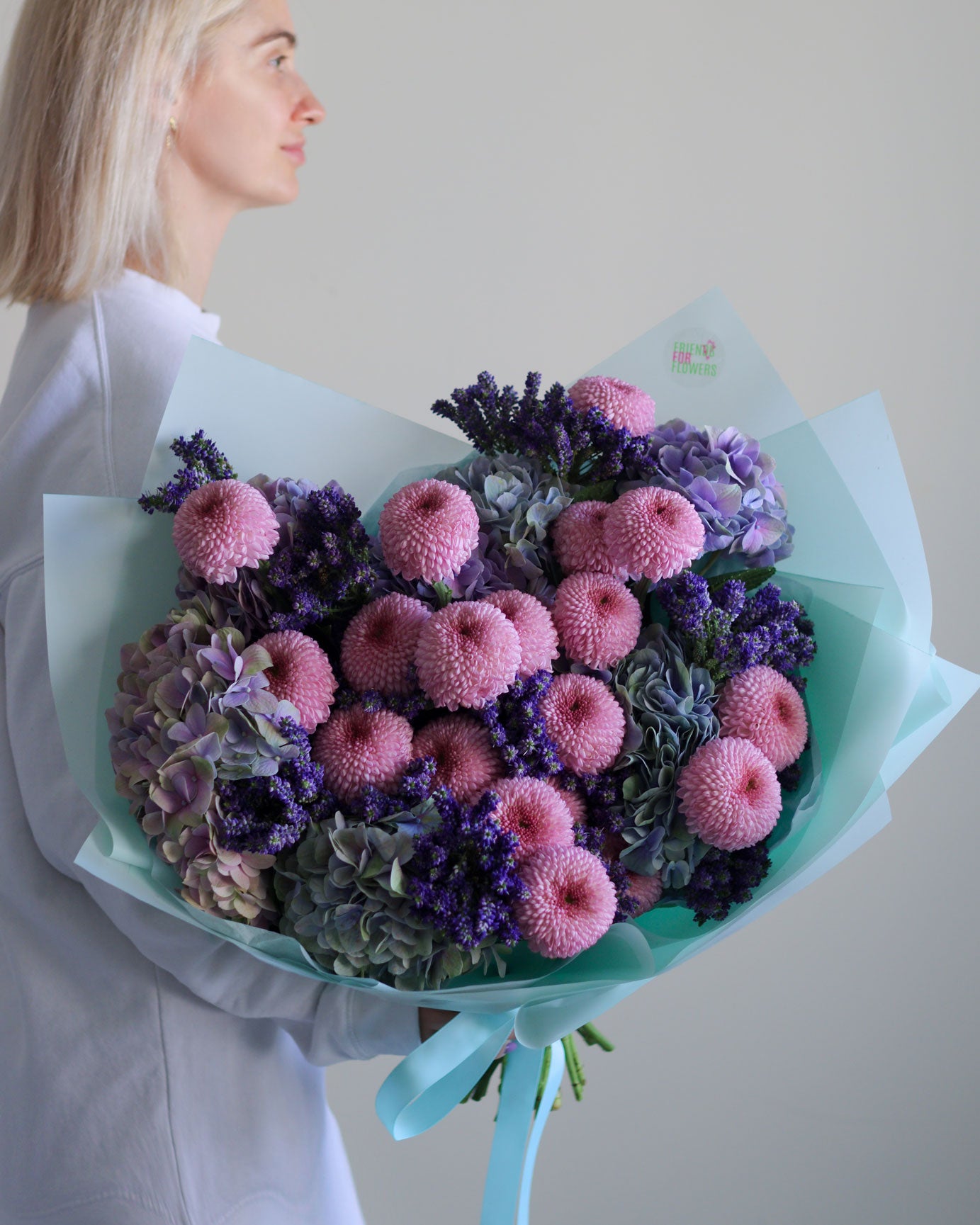 Indulge in a bouquet that unfolds like a confectionery masterpiece with the Marzipan Bouquet, featuring the ethereal beauty of Hydrangea, the intricate blossoms of Chrysanthemum, and the delicate charm of Clematis. This enchanting ensemble is a visual symphony that mirrors the delicate sweetness of marzipan, creating a sensory experience that combines floral opulence with the irresistible allure of a sweet treat.