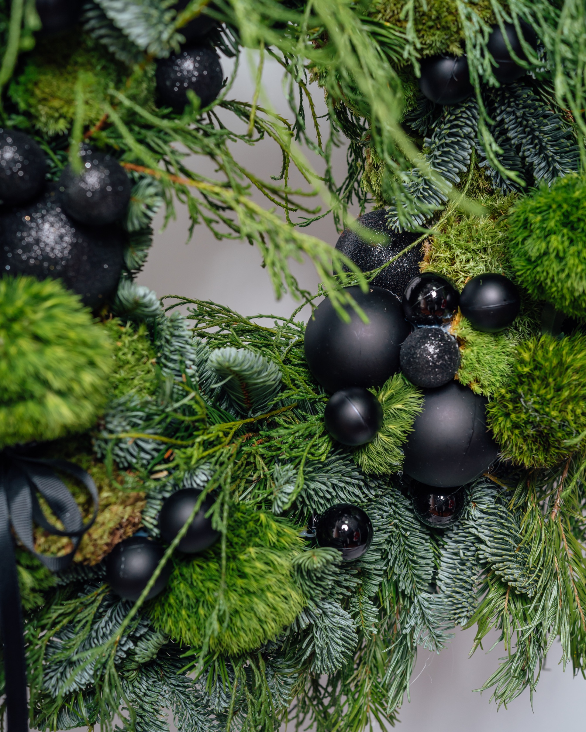 Used: Nobilis, Juniperus, Moss, Pinus, Christmas decor