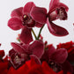 In the "Scarlet Love" bouquet, Anthuriums take center stage, their heart-shaped blooms infusing a touch of exotic allure. Roses, in various shades of red, offer a classic representation of love, while the elegant Cymbidium orchids add a note of refinement. Protea blooms bring a touch of the wild with their unique structure, and Skimia foliage completes the ensemble with a hint of texture and depth.